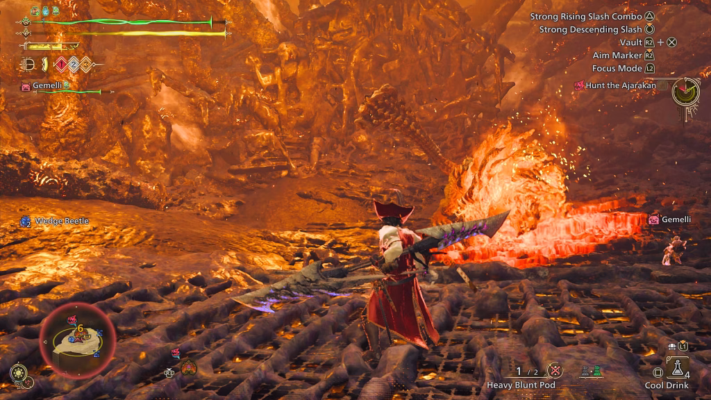 - Fase finale: In preda alla furia, l’Ajarakan si ricopre completamente di magma e diventa più veloce. In questa fase, punta alle zampe per destabilizzarlo e costringerlo a raffreddarsi.