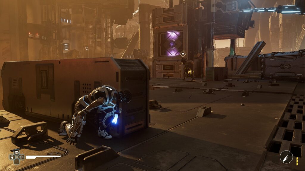 Il platforming funziona decentemente: scivolate, arrampicate, salti su pareti distrutte, fughe da edifici che crollano. Tutto molto “cinematografico”, ma anche qui, tutto molto visto e rivisto. L’ispirazione ad Uncharted è palese, ma senza la stessa fluidità o tensione. Le sequenze spettacolari ci sono, tipo quando ti ritrovi a scappare da una struttura che implode o da un robotone incazzato, ma funzionano solo le prime volte, poi diventano prevedibili. Sai già cosa sta per succedere e ti ritrovi a pensare: “Okay, fammi sta corsetta scriptata così torno a fare stealth, va’.”