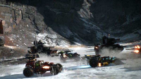 Il gioco è sviluppato da Caged Element, quelli che avevano già partorito GRIP: Combat Racing (altra roba da cervello in fiamme), in collaborazione col colosso Games Workshop, i papà malati di mente del mondo Warhammer. A pubblicarlo ci pensa Plaion, che si è svegliata e ha deciso di farci giocare con veicoli guidati da orchi urlanti armati fino ai denti.