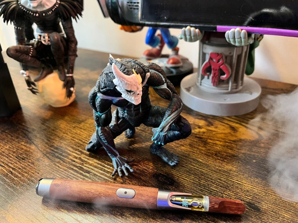 Questo vaporizzatore è una goduria già al tatto: ha una texture in legno che non solo lo rende unico rispetto alla solita plastica cheap da due spicci, ma gli dà un’eleganza brutale, quasi retrò, come se stessi usando una reliquia high-tech rubata da uno yakuza moderno.