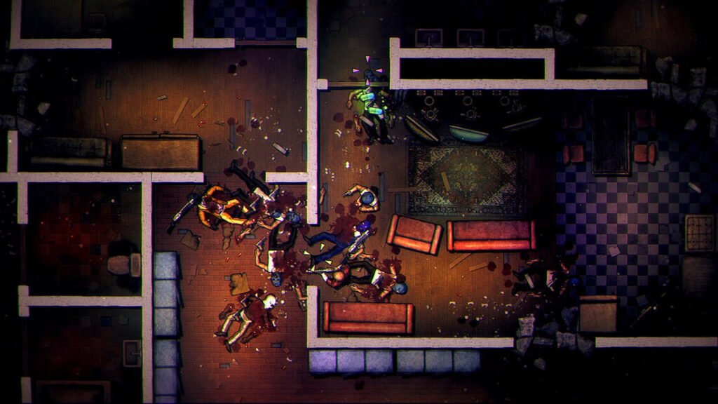 Inutile nascondere che Pain To Win prende a piene mani da Hotline Miami: la visuale top-down, la brutalità, il ritmo adrenalinico, tutto urla omaggio a quel capolavoro psicopatico. Ma dove Hotline Miami era un trip acido neon anni ‘80, qui siamo dentro a un incubo horror splatter, più marcio e grottesco.