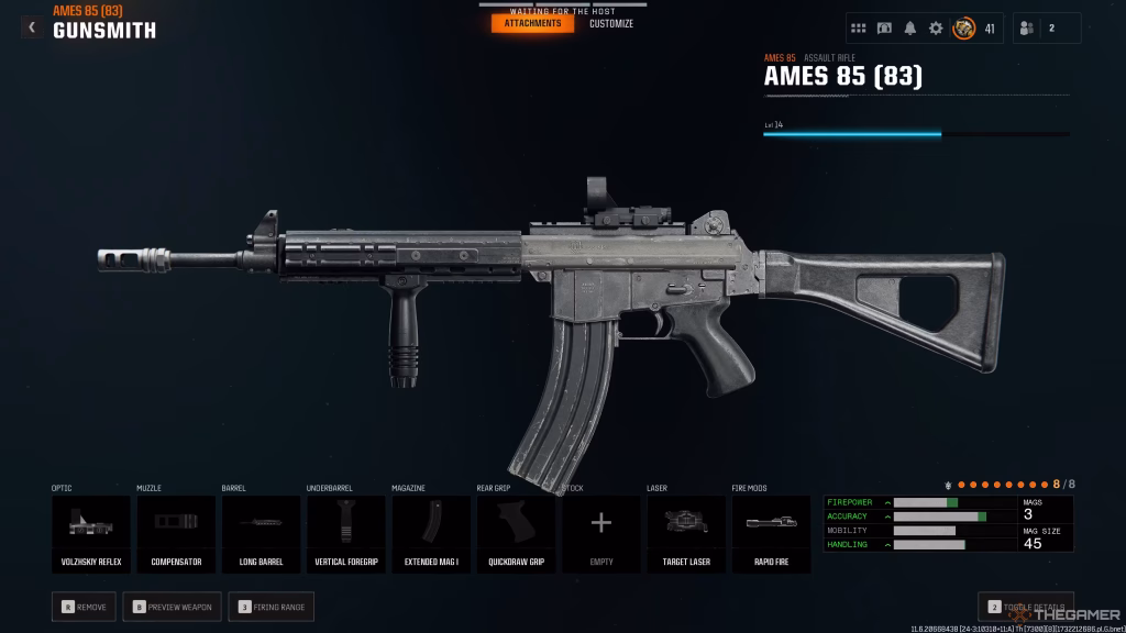 Questo setup è un coltellaccio da macellaio: preciso, stabile e pronto a tagliare la gente a metà. Compensatore e presa verticale ti tengono il rinculo sotto controllo, la canna rinforzata aumenta la botta, impugnatura ergonomica per muoverti veloce, calcio bilanciato e molle di rinculo per non far saltare l’arma come una puttana ubriaca.
