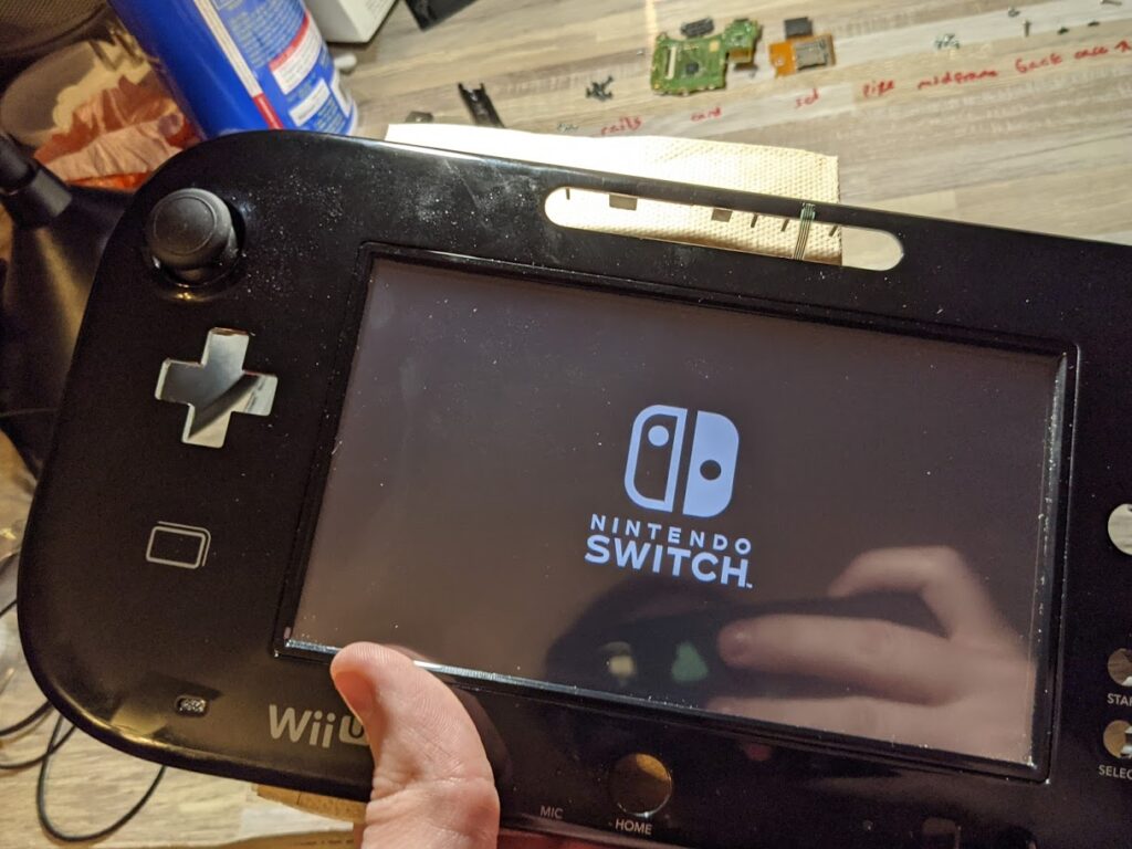 Risultato? Un ibrido che sembra un Wii U perfettamente normale, solo che fa girare Zelda Tears of the Kingdom al posto di Wii Party.